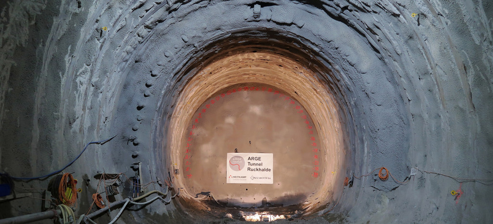 Bijzonderheid: Het tunnelgedeelte in de rots werd beveiligd met een regenschermafdichting en shotcrete binnenbekleding. In het losse gesteente was de binnenbekleding voorzien van een eenlaagse afdichting in het overgangsgebied naar het grondwater. Het tunnelgedeelte, dat volledig onder het grondwaterniveau ligt, werd bekleed met een dubbellaags, drukwaterdicht afdichtingssysteem (P+I) dat volgens plan opnieuw kan worden geïnjecteerd en een versterkte binnenboog.